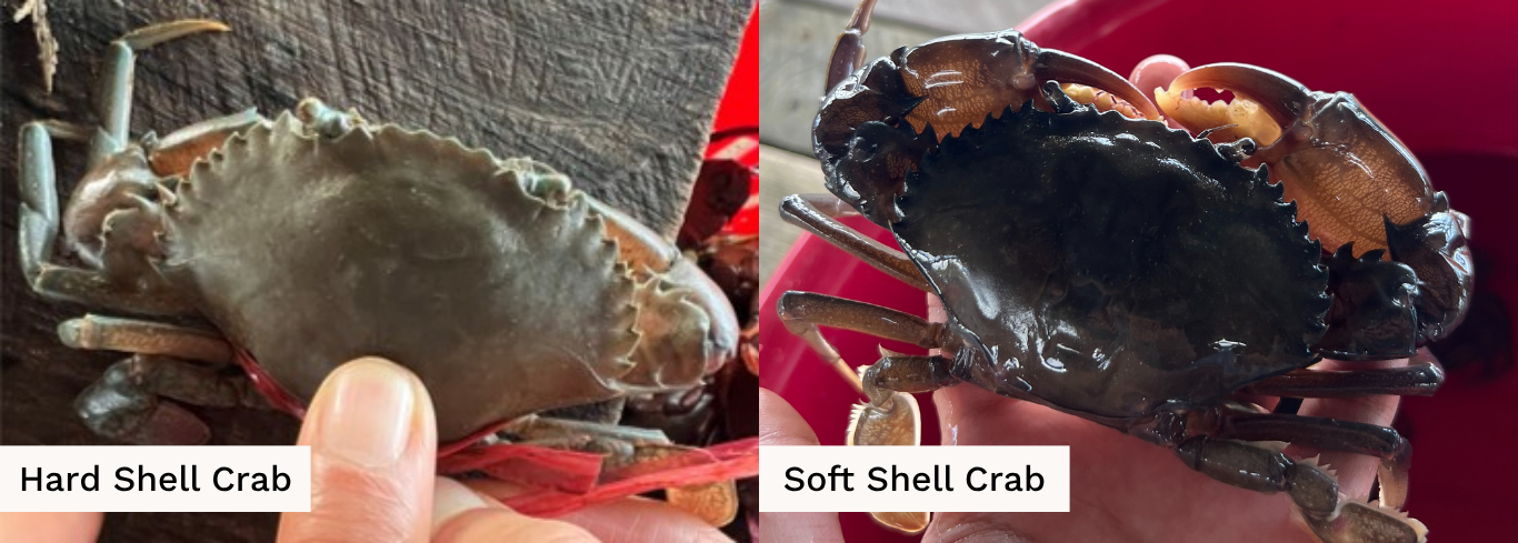 Soft shell crabs are crabs that have recently shed their hard outer shells — a natural process known as molting. Crabs must molt several times over their lifetime as they outgrow their existing shells and must shed them prior to forming their new shells. Immediately after molting, crabs reveal a soft and delicate shell underneath — soft enough to be entirely edible. However, if left alone in the water, the shell will quickly harden after only a few hours. To capture the crabs at their peak tenderness, all of our farms are monitored 24/7. Each crab is carefully harvested the moment it molts — ensuring unmatched freshness, texture, and flavor in every bite.