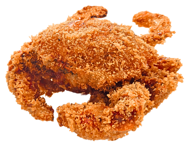 Dredge each crab in flour → egg → panko, shaking off excess at each step.